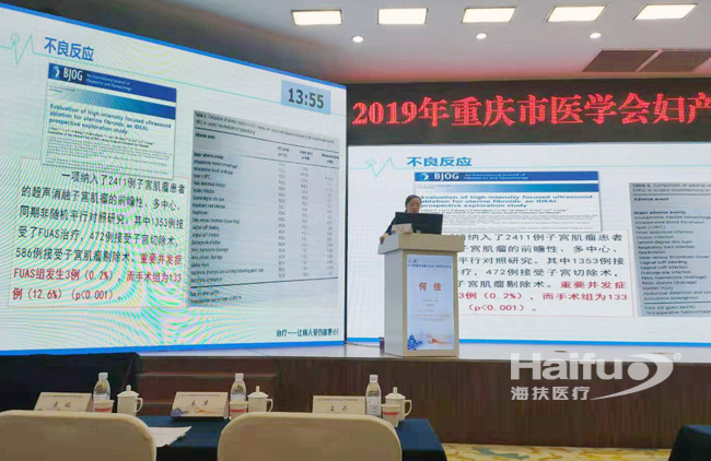 何佳院長還公布了遂寧市中醫院聚焦超聲消融手術治療子宮肌瘤5年隨訪研究情況:聚焦超聲消融手術治療和子宮肌瘤剔除術相比,5年后復發概率差不多;其中聚焦超聲消融手術組在術后第三、四年進行二次干預,主要原因:患者的心理——無法忍受超聲消融后的肌瘤還存于體內,需要再等一段時間,才能被機體完全代謝掉。