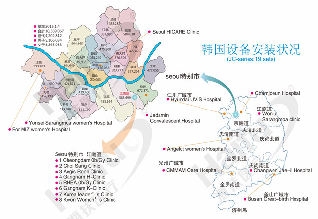 截止目前,韓國有21家醫院引起了海扶刀®聚集超聲腫瘤治療系統,其中首爾市有14家,首爾以外有7家。