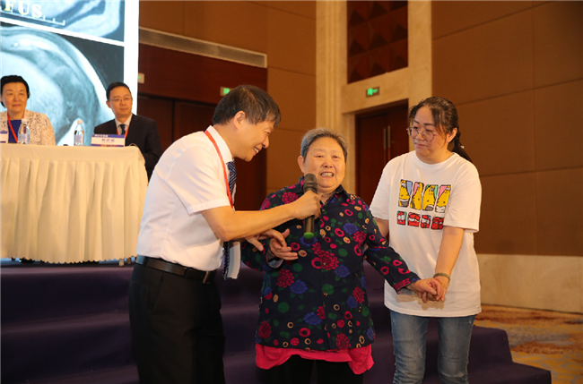 為使嘉賓們更直觀的了解聚焦超聲消融手術,王智彪還邀請患者上臺互動。