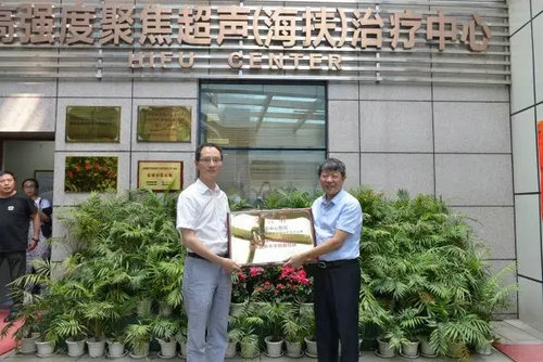 隨后,海扶刀®發(fā)明人王智彪教授給我院頒發(fā)了“首創(chuàng)全球7000例紀(jì)錄 聚焦超聲手術(shù)新里程碑”的榮譽(yù)牌。