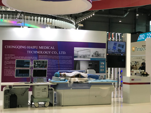 中國共有15個省(市)政府代表及186家企業參展。作為博覽會上中國唯一的一家大型醫療設備參展商,重慶海扶醫療真機展覽,現場演示治療場景,把不開刀、不流血,從體外對體內腫瘤的無創治療直觀展現在觀眾眼前,吸引了眾多參展人士駐足在海扶醫療展臺。