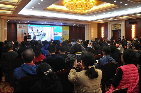 講座中,汪煉院長介紹了重慶海扶醫院遵從的“微無創的治療理念”、“從‘治病’到‘治病人’”、“我的健康我做主”的三大辦院和行醫理念。并做了聚焦超聲消融手術治療子宮肌瘤手術的實時現場直播。