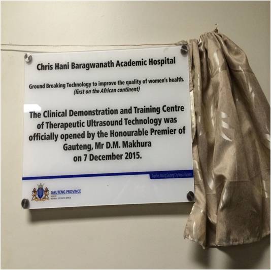 【牌匾譯文:Chris Hani Baragwanath 醫(yī)院為提高女性健康質(zhì)量的一項革命性技術(shù),非洲大陸首次引進(jìn),2015年12月7日】