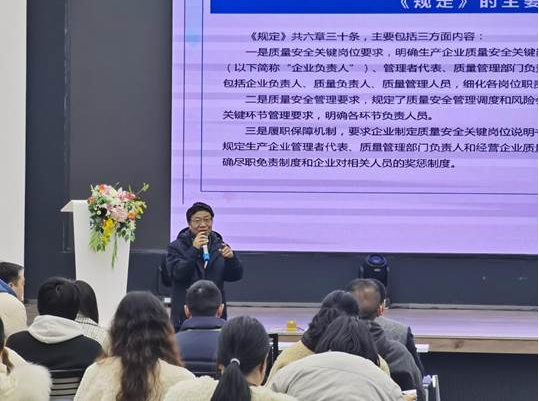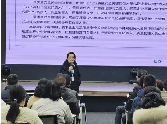 培訓會上,企業負責人,總經理蔣鋼作出了“全員貫徹落實《規定》,滿足企業合規,保證產品質量”的工作指示;管理者代表葉方偉發表了“責任到人”的見解,表達了全員學習法規的重要意義以及“任其職盡其責”的希冀;質量負責人楊治蘭初步提出后續將建立工作小組對公司內部進行自查自糾的工作計劃。