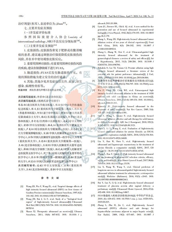 聚焦超聲消融手術(shù)臨床應(yīng)用技術(shù)規(guī)范專家共識2020版
